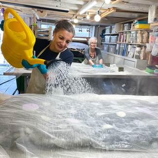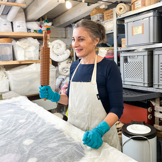 Es ist beeindruckend zu sehen, mit welcher Hingabe sie arbeitet. Ihre Verbundenheit mit der Wolle und dem Filzen ist tief, so dass man sich kaum vorstellen kann, dass sie jemals etwas anderes gemacht hat.